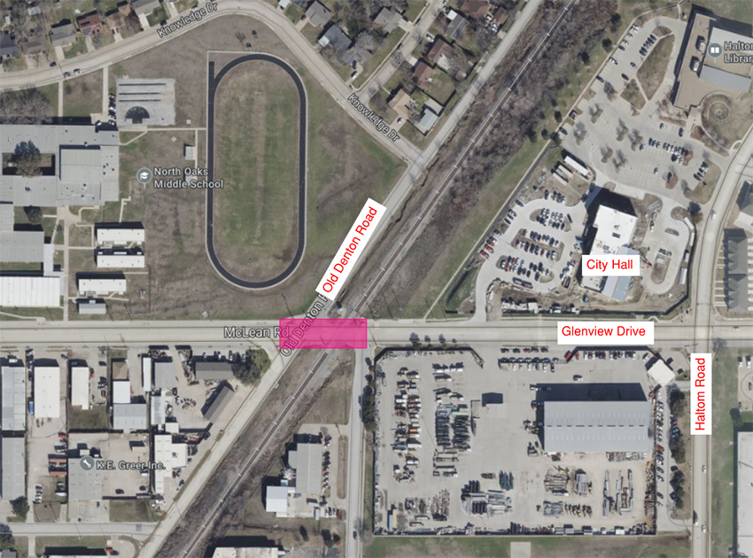 The scope of the project includes the widening of Glenview Dr. and reconstruction of the intersection with the UPRR (United Pacific Railroad) crossing (approximately 200 linear feet) inclusive of replacement of existing sidewalks, median improvements, signage, and fencing required to accommodate signalization upgrades by UPRR in order to become a Quiet Zone. The Quiet Zone will be established pending completion of improvements by UPRR; estimated by the Spring 2026.